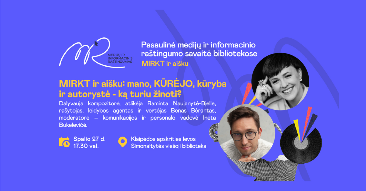 „MIRKT ir aišku: mano, KŪRĖJO, kūryba ir autorystė – ką turiu žinoti?“ | MIRKT savaitė 2025