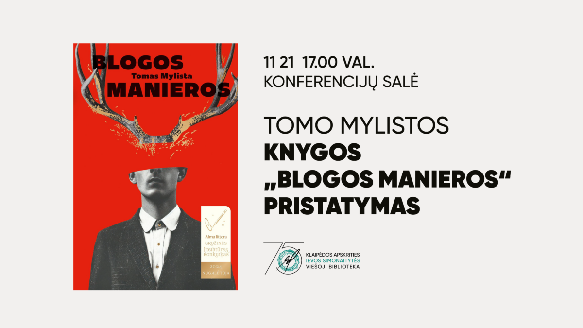 Maloniai kviečiame į trečiojo leidyklos „Alma littera“ Suaugusiųjų literatūros konkurso nugalėtojo romano „Blogos manieros“ pristatymą. Knyga ne tik įtraukia į šmaikštų ir nuoširdų iki paskutinio puslapio pasakojimą, bet ir primena, ką reiškia gyventi pasaulyje, kuriame pamatinės vertybės yra pristatomos atvirkščiai.
